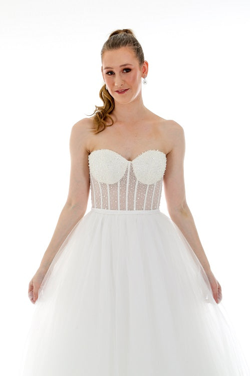 SAMPLE & SALE gowns have been tried on by other customers. Please see our Terms & Conditions in regards to purchasing our Sale or sample stock, as there is No Refund/Exchange on this item. All sales are final. All alterations and dry cleaning costs are not included on sale/ sample gowns.