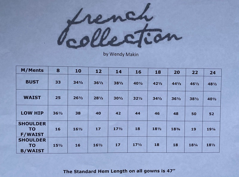 PLEASE NOTE: Pre-order dresses are made to our standard size charts, and may still require alterations when you receive it. We will often ask for your measurements during the ordering process, but this is only to ensure that you will fit into that standard size.